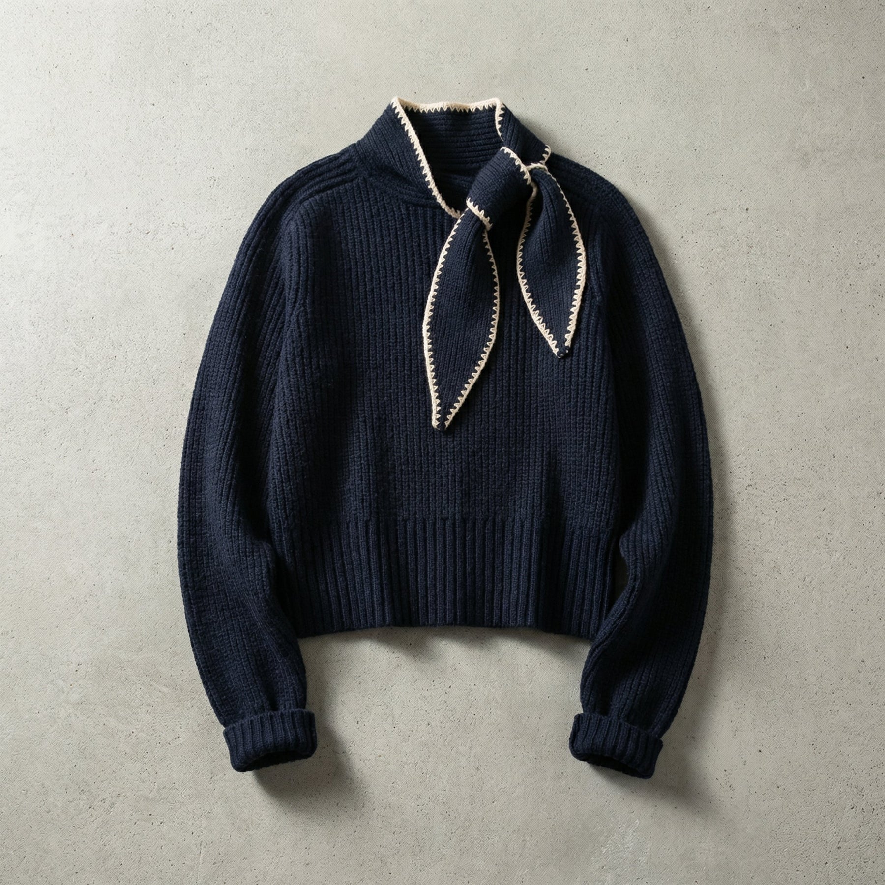 Experience unmatched luxury with Lorméne Bow-Knit Pullover, crafted from a sumptuous merino wool blend. Its impeccable fit ensures a silhouette of refined elegance and all-day comfort. The delicate bow detail and stand-up collar exemplify sophisticated design and meticulous craftsmanship.